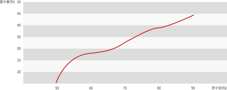 혼수량 흡수율이 많을수록 흡수율은 커지게 됩니다.