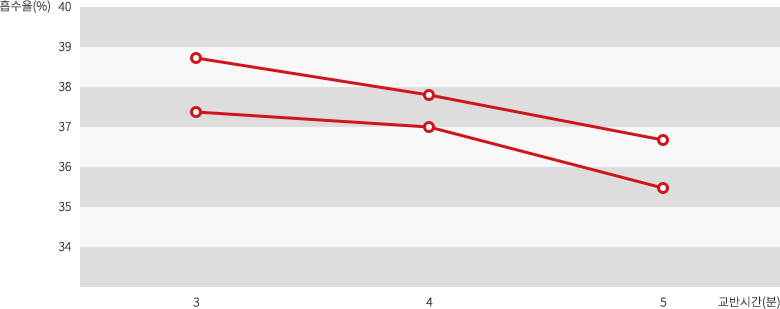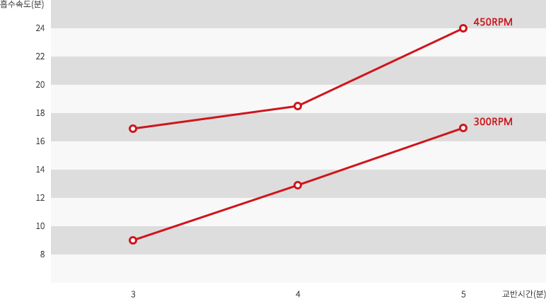 - 교반시간을 짧게했을 경우 흡수속도는 빠르고, 길게 했을 경우 흡수속도는 느리게 됩니다.
