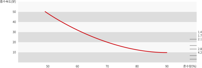 - 교반시간이 짧을 경우 흡수력은 약하고, 반대로 충분히 교반할 경우 흡수력은 강해집니다.
