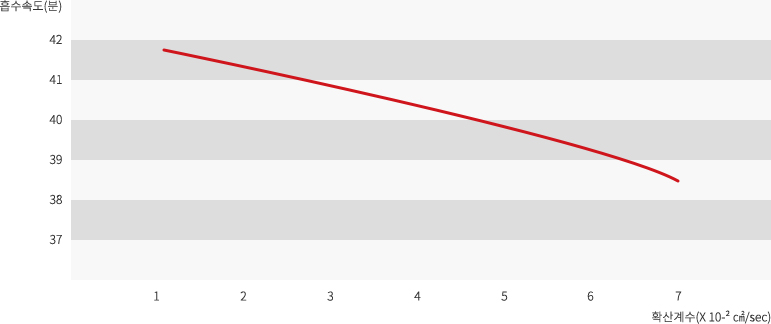 - 혼수량이 적을수록 흡수속도는 느리고(확산계수는 적고), 혼수량이 많을수록 흡수속도는 빨라지게 됩니다.(확산계수는 커지게 된다.)