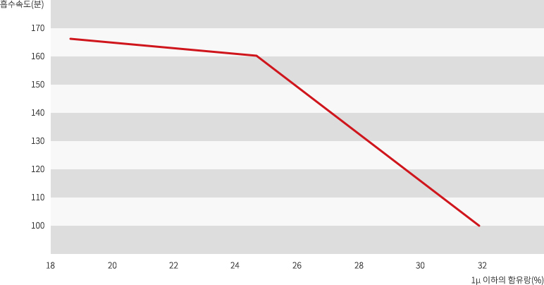따라서 경화체의 물의 이동속도는 늦어지고 흡수력은 커지게 됩니다.
